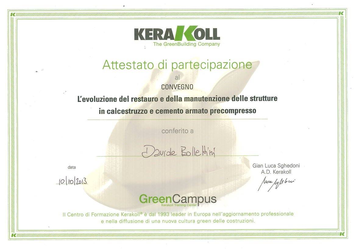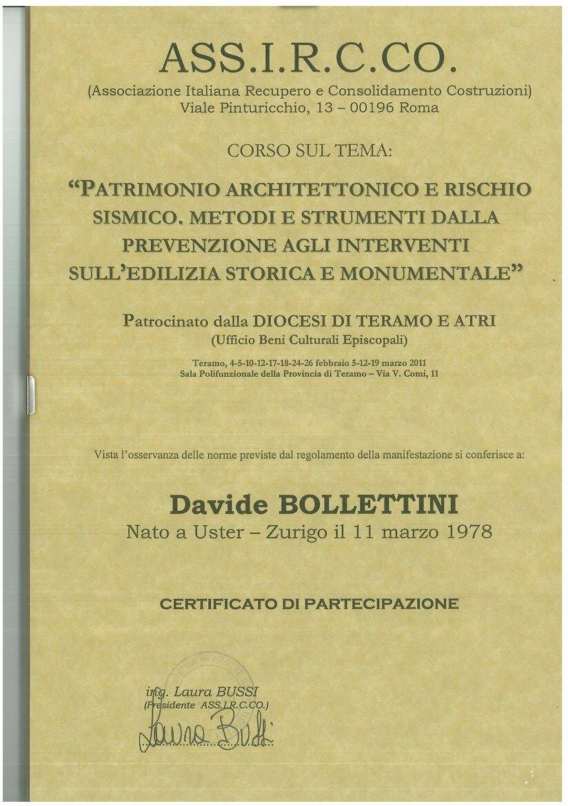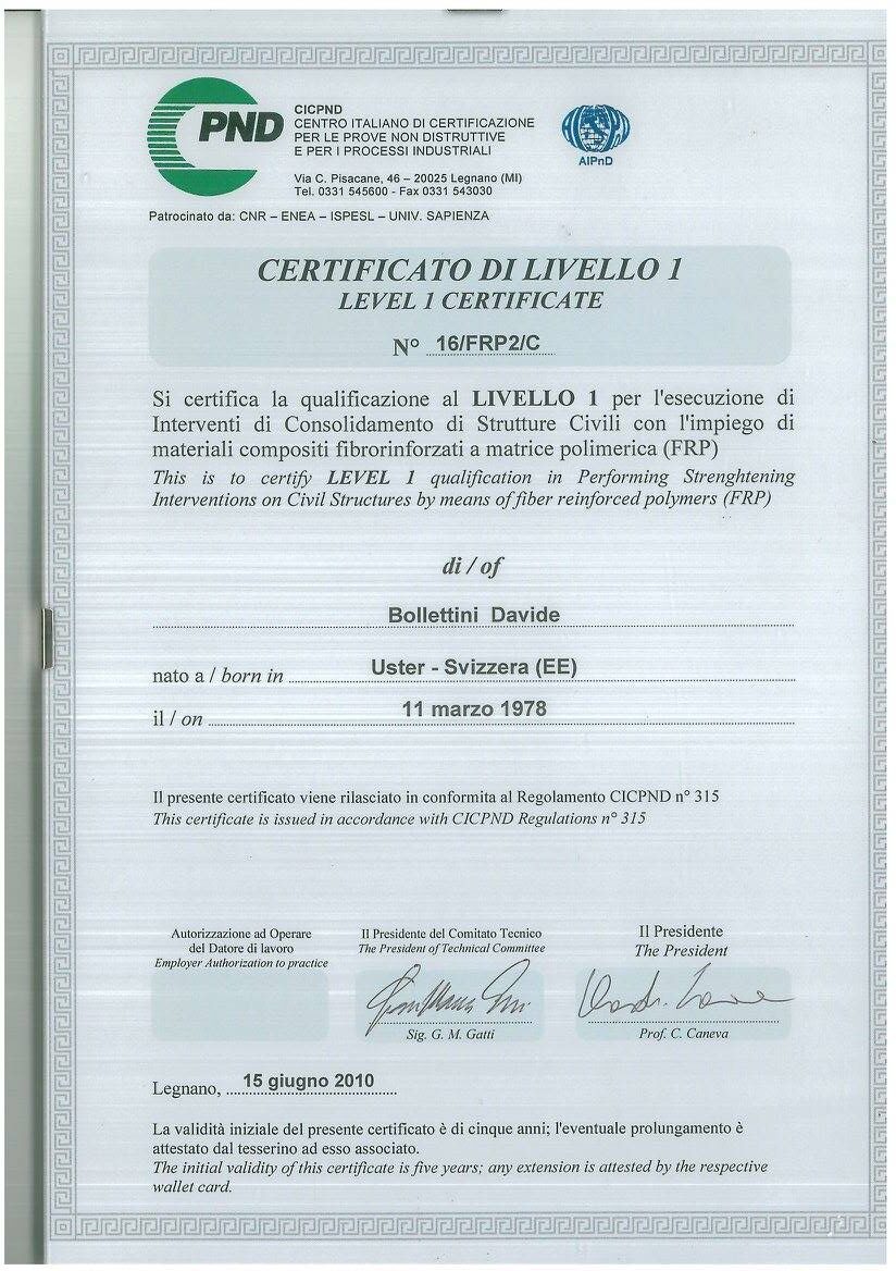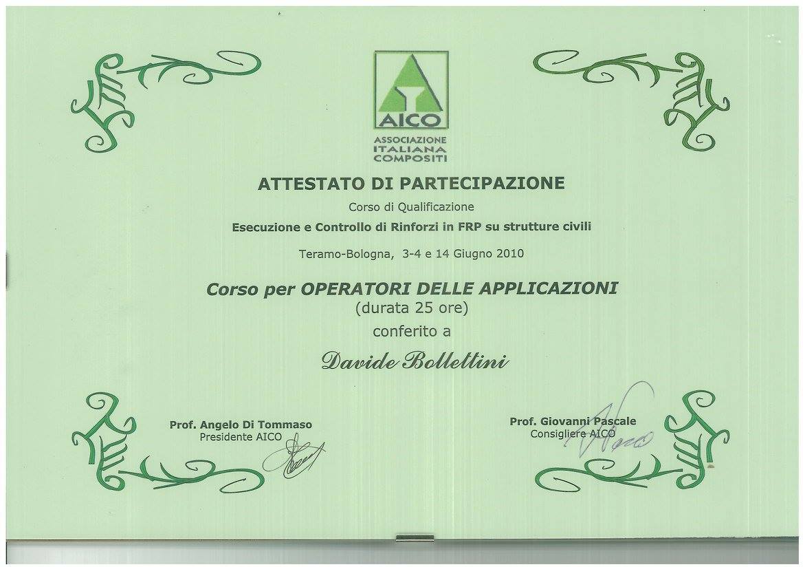 Nel ramo dell’edilizia, essere un’impresa edile certificata a Teramo è garanzia di qualità, sicurezza ed efficienza nei processi produttivi. Per questo Bollettini Costruzioni da sempre ha focalizzato il suo interesse verso la certificazione delle proprie competenze, costantemente aggiornandosi ai nuovi standard e all’avanguardia tecnologica. L’azienda è infatti in grado di eseguire rinforzi strutturali con nastri in fibre di carbonio e lamine su ogni tipo di struttura in cemento armato, muratura e legno grazie alla certificazione ottenuta nel 2010 dal CICPND (Centro Italiano di Certificazione per le Prove Non Distruttive e per i Processi Industriali). L’attestazione AICO (Associazione Italiana Compositi Fibrosi) riunisce i più noti produttori di sistemi di rinforzo in fibra di carbonio per l’esecuzione di interventi di consolidamento di strutture civili con l’impiego di materiali compositi fibrorinforzati a matrice polimerica (FRP), ed è motivo d’orgoglio per Bollettini Costruzioni essere una delle poche imprese in Italia ad avere conseguito tale certificazioni. Vista la zona sismica in cui opera Bollettini Costruzioni, sono anche di fondamentale importanza le certificazioni che attestano l’aggiornamento del team ai metodi e agli strumenti di prevenzione e di intervento sull’edilizia storica e monumentale in caso di sisma. Attraverso i seminari intensivi di Legno & Edilizia, l’azienda si è anche certificata nella gestione delle strutture in legno in caso di terremoto. Inoltre, essere un’impresa edile certificata a Teramo vuol dire poter offrire sistemi di produzione certificati UNI EN ISO 9001:2008 per la gestione della qualità e possedere qualificazioni SOA per le categorie OG1 IV (Edifici civili e industriali) e OG3 I (strade, autostrade, ponti, viadotti, ferrovie, metropolitane). Infine, Bollettini Costruzioni è anche abilitata all’esecuzione di opere impiantistiche (idriche, elettriche e termiche) ai sensi del D.M. 37/08, e opera in maniera perfettamente allineata con le norme in materia di igiene e sicurezza sui luoghi di lavoro (D.Lgs. 81/08 – D.Lgs. 106/09).
